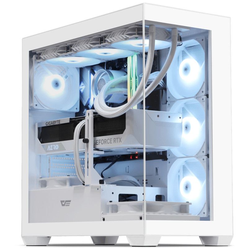 darkFlash DS900 白 顯卡長42.5/U高17/全景玻璃透側/ARGB風扇*4/含顯卡支架/ATX